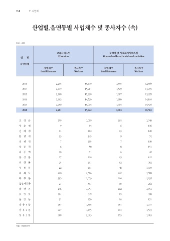 산업별,읍면동별 사업체수 및 종사자수 (속)