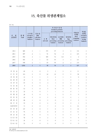 읍면동별 Total slaughter collection 식육가공업 유가공업 알가공업 wrapping products