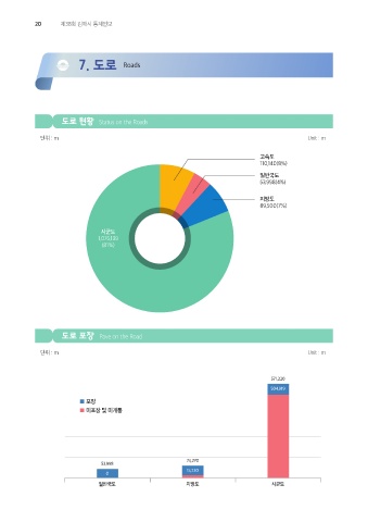 20 제38회 김해시 통계연보 7. 도로 Roads 도로 현황 Status on the Roads 단위 : m Unit : m 고속도 110,140(8%) 일반국도 53,998(4%) 지방도 89,500(7%) 시군도 1,076,139 (81%) 도로 포장 Pave on the Road 단위 : m Unit : m 571,220 504,919 ■ 포장 ■ 미포장 및 미개통 74,270 53,998 15,230 0 일반국도 지방도 시군도