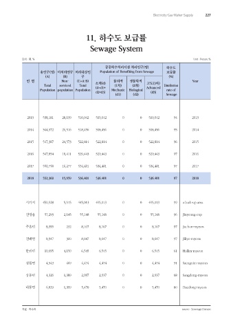 총인구(명) 미처리인구 처리대상인 Population of Benefiting from Sewage 보급률