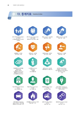 자동차등록대수(Registered 화재발생(Fire accidents) : 509건 교통사고(Traffic accident) : 범죄발생(Criminal occurrence)