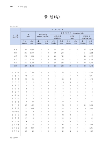 읍면동별 Total National City park 어린이공원 소공원 근 린 공 원