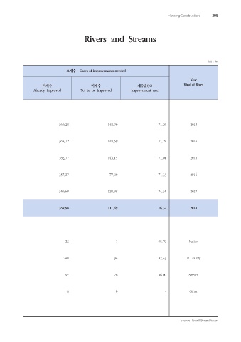 기개수 미개수 개수율(%) Kind of River