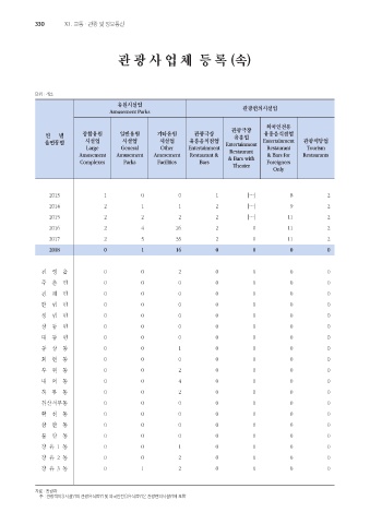 연 별 종합유원 일반유원 기타유원 관광극장 유흥업 유흥음식점업