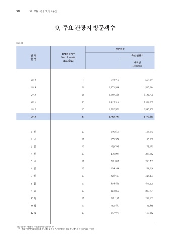 주 : 주요 관광지만을 대상으로 방문객수를 중복 집계하였기에 실제 방문객수와 차이가 있을 수 있음