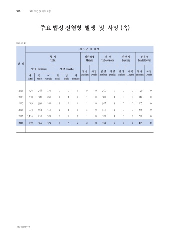 주요 법정 전염병 발생 및 사망 (속)
