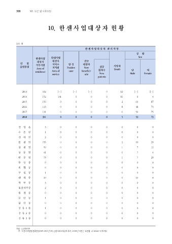 10. 한 센 사 업 대 상 자 현 황
