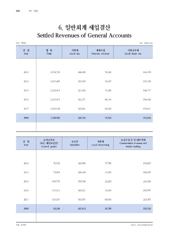 연 별 (또는 재정보전금) 보조금 지방채 Conservation revenue and