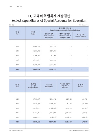 Year Budget 전년도 이월액 예비비지출 결정액 이용 및 이체