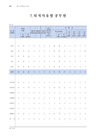 연 별 Total 정무직 별정직 특정직 공무원 계 sub-total