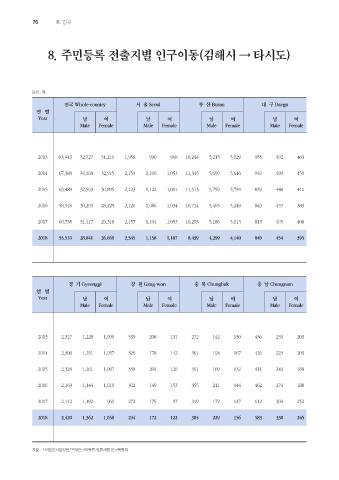 8. 주민등록 전출지별 인구이동(김해시 → 타시도)