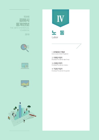 Hostory 87 제38회 Ⅳ 김해시 통계연보 THE 38TH STATISTICAL YEARBOOK 노 동 2019 Labor 1. 경제활동인구총괄 Economically Active Population 2. 연령별 취업자 Employed Persons by Age Group 3. 산업별 취업자 Employed Persons by Industry 4. 직업별 취업자 Employed Persons by Occupation