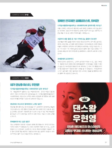 맞춰 운동 프로그램을 구성하여 훈련하고, 평소에는 체력에 좋은 음식을 챙 중 스키 수업이 특히 기억에 남는데, 4년간의 실력이 쌓여 서울시 장애인 스키