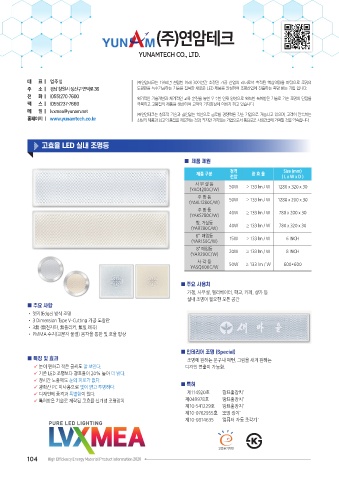 대 표 ㅣ 엄 주 성 ㈜연암테크는 1990년 설립한 이래 30여년간 초정밀 가공 산업의 리더로서 축적된 핵심역량을 바탕으로 조명의