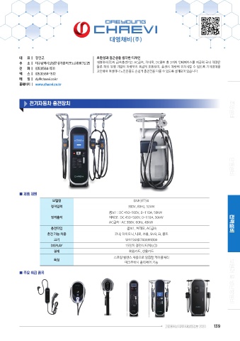 주 소 ㅣ 대구광역시 달성군 유가읍 테크노순환로 7길 25 대영채비(주)의 급속충전기는 AC급속, 차데모, DC콤보 총 3개의 인터페이스를 제공해 국내 차량은