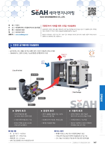 홈페이지 ㅣ www.seaheng.co.kr 블로워 사업부에서는 항공 터보 엔진 기술인 공기 베어링과 최적의 공력 설계 기술을 적용한 친환경 에너지