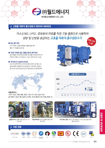 흡수냉동기, 냉온수기를 수출하고 있으며, 우수한 품질로 세계시장을 선도합니다. 전력설비