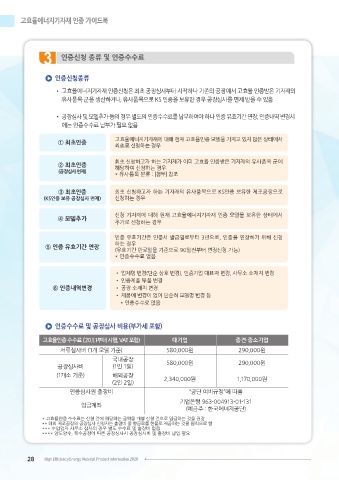 • 공장심사 및 모델추가 등의 경우 별도의 인증수수료를 납부하여야 하나 인증 유효기간 연장, 인증내역 변경시