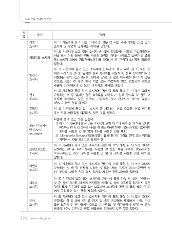 이 표 가운데에 들고 있는 소시지에 관한 이 표의 하측 란 4)에 규정하는