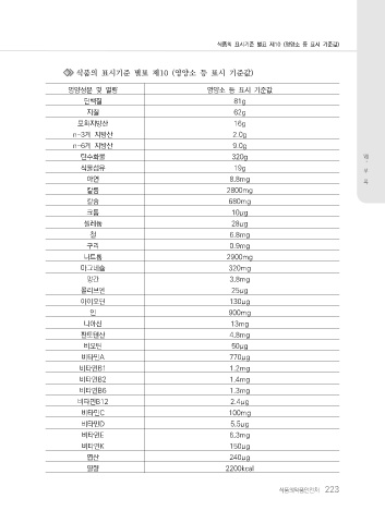 식품의 표시기준 별표 제10 (영양소 등 표시 기준값)