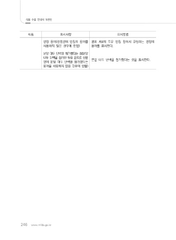 식품 수출 안내서 일본편 표시사항 식품 표시방법 명칭 용어(상품명에 명칭의 용어를 별표 제4의 두유 명칭 항에서 규정하는 명칭의 사용하지 않은 경우에 한함) 용어를 표시한다. 분말 대두 단백을 첨가했다는 점(분말 대두 단백을 첨가한 두유 음료로 상품 분말 대두 단백을 첨가했다는 것을 표시한다. 명에 분말 대두 단백을 첨가했다는 용어를 사용하지 않은 경우에 한함) 246 www.mfds.go.kr