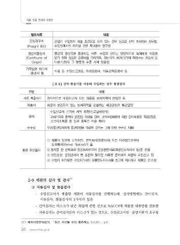 식품 등 수입신고필증, 위생증명서, 식물검역증명서 등