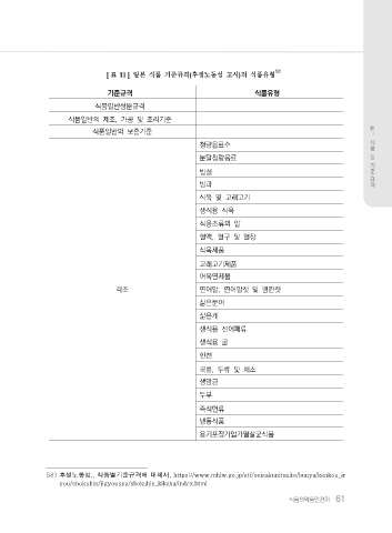 [ 표 11 ] 일본 식품 기준규격(후생노동성 고시)의 식품유형
