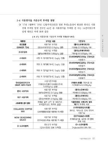 2-6 식품첨가물 기준규격 부적합 현황