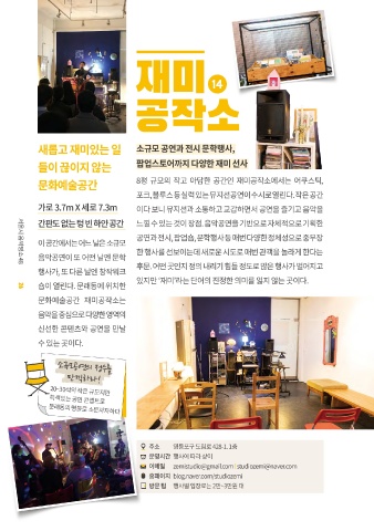 수 있는 곳이다. 나도 뮤지션! 작업을 지원하는 연습실, 녹음실 등도 함께 운영 중이다.