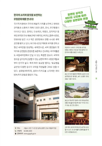 국악의 전통을 계승한 청년 국악인을 양성하는 국악연수관, 국악 명인들의 옛 700여 석 규모의 국악전용 공연장.