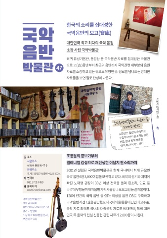 전국의 민요를 집대성한 ‘서울우리소리박물관’과 ‘국악음반박물관’은