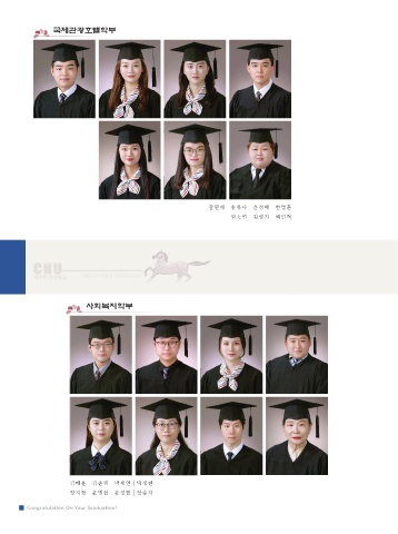 국제관광호텔학부 106 김민재 송유나 윤정혜 현명훈 권소연 김영지 백민혁 CHU 제주한라대학교 CHEJU HALLA UNIVERSITY 사회복지학부 김태윤 김준혁 박세연 박정현 양지현 윤명선 윤성현 장춘자 Congratulation On Your Graduation!