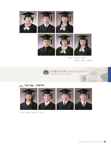 107 정길자 정우철 조은별 허준경 김정숙 강희경 CHEJU HALLA UNIVERSITY Graduation Anniversary Album 정보기술·건축학부 김수련 강민규 김승현 이진권 Congratulation On Your Graduation!
