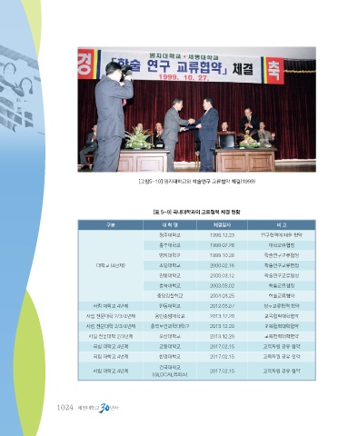 [그림5-10] 명지대학교와 학술연구 교류협약 체결(1999)