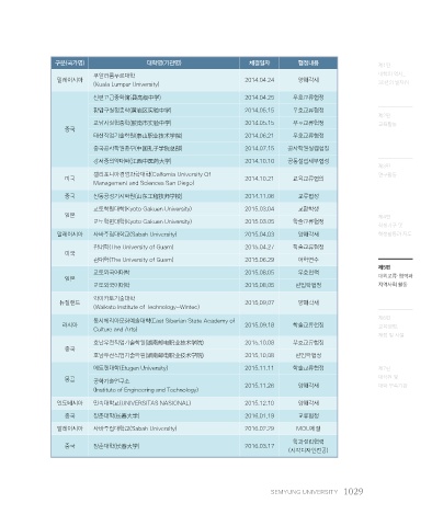 구분(국가명) 대학명(기관명) 체결일자 협정내용 제1편