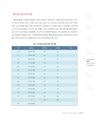 [표 5-14] 민송CEO과정 입학·수료 현황