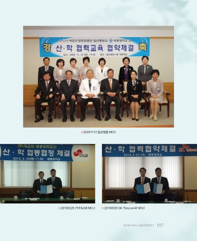 20091113 일산병원 MOU 20100225 (주)대교와 MOU 20100929 SK Telecom과 MOU SEMYUNG UNIVERSITY 107