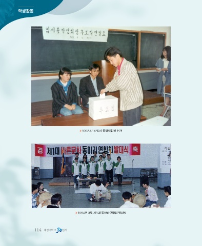 학생활동 1992.4.14 임시 총학생회장 선거 1994년 3월 제1대 동아리연합회 발대식 114 세명대학교 년사
