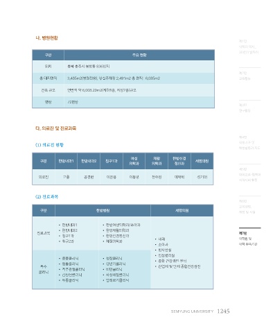 총 대지면적 3,485m2(병원전용), 부설주차장 2,491m2 총 면적 : 6,085m2 교육활동