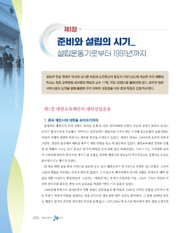 학교는 최초 입학정원 400명의 학생과 교수 17명, 직원 20명으로 출발선에 섰다. 중부권 명문