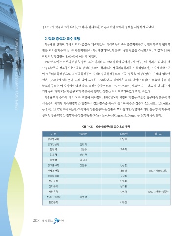 <표 1-2> 1996~1997년도 교수 초빙 내역