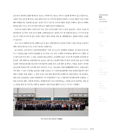 우리 모두가 변화와 혁신의 고삐를 늦추지 말고, 명문대학으로 발전하기 위한 비전과 희망을 공유하기 제3편