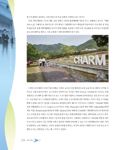 적응 역량), Relationship(대인관계 역량), Mastery(전공 역량)의 CHARM이 세명대학교의 5대 핵심역량
