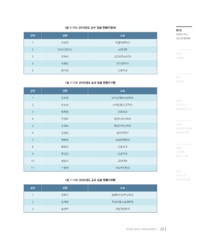 <표 1-14> 2020년도 교수 임용 현황(18명) 대학 부속기관