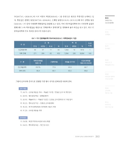 <표 1-15> 인문예술대학 주요지표(2020.4.1. 대학정보공시 기준)