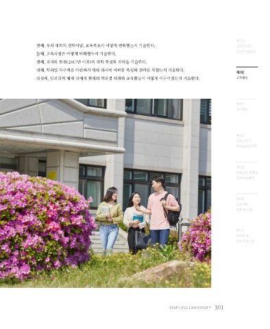 다섯째, 단과대학 체재 내에서 현재의 학과별 체재와 교육활동이 어떻게 이루어졌는지 기술한다. 교육활동