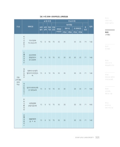 [표 2-8] 2006~2009학년도 교육편성표