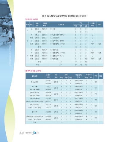 [표 2-14] IoT융합시스템학 연계전공 교육과정 신설(2018학년도)