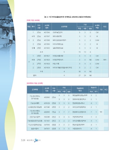 [표 2-16] 바이오품질관리학 연계전공 교육과정 신설(2018학년도)