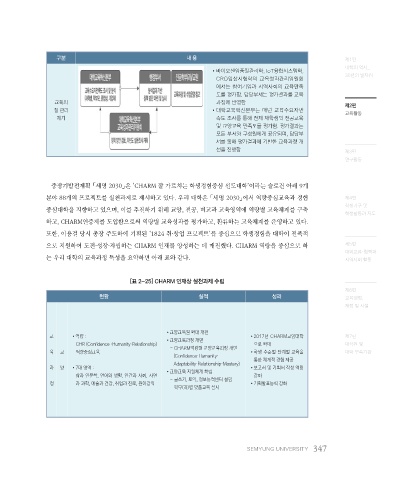 하고, CHARM인증제를 도입함으로써 역량별 교육성과를 평가하고, 환류하는 교육체계를 운영하고 있다.